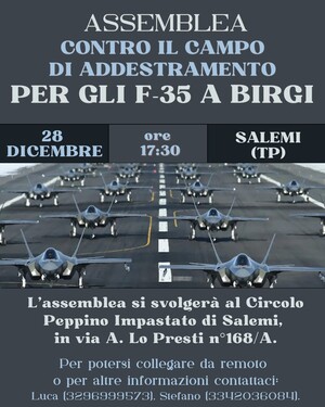 via Antonino Lo Presti n. 168/A - Salemi (TP)Indetta la prima assemblea contro il campo di addestramento per gli F35 in programma per la base aeroportuale di Birgi (consorzio di Trapani). ... - dic29lunassemblea