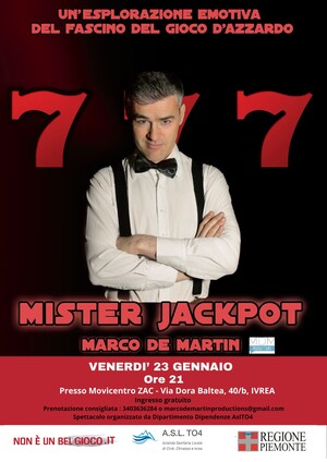 VIA DORA BALTEA, 43/B - IVREA (TO)Il fascino proibito del gioco d'azzardo svelato da Mister Jackpot, un complice del demone del gioco. VENERDI 23 GENNAIO 2026, Movicentro Zac, Via Dora ... - gen30vendibattito