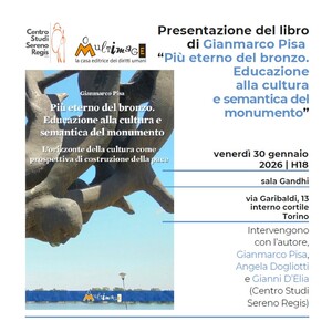 Conferenza di presentazione della nuova pubblicazione di Gianmarco Pisa, il libro "Più eterno del bronzo. Educazione alla cultura e semantica del monumento. L’orizzonte della cultura come prospettiva di costruzione della pace" (Multimage, Firenze, 2026), venerdì 30 gennaio 2026, ore 18.00, presso il Centro Studi Sereno Regis, Torino.