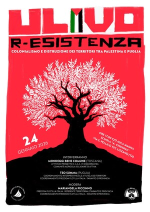 L' ulivo quale simbolo centrale di identità, storia, cultura e resistenza, rappresenta il forte legame ancestrale dei popoli con la propria terra. In Palestina e in Cisgiordania è anche oggetto di distruzione e conflitto, con sradicamenti e attacchi da parte dei coloni e delle forze israeliane, che minacciano l'economia locale e il sostentamento di molte famiglie, sebbene la raccolta delle olive rimanga una tradizione comunitaria vitale e un'espressione di speranza. In Puglia lo sradicamento degli alberi centenari, è sintomo di una trasformazione territoriale già in atto da molto tempo, con ripercussioni occupazionali, ambientali, culturali e storiche molto gravi.
