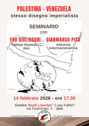 Sabato 14 Febbraio 2026, ore 17.00, presso il Centro Studi Libertari “Luigi Fabbri”, in Via Pastrengo 1, Jesi, seminario di approfondimento sulle dinamiche di conflitto e di guerra nei diversi scenari dall'America Latina al Vicino Oriente e le correlazioni tra i diversi fronti di guerra su scala internazionale a partire dalle relazioni di Ero Giuliodori (docente, Istituto Gramsci, Jesi) e di Gianmarco Pisa (operatore di pace, Istituto Italiano di Ricerca per la Pace - Corpi Civili di Pace).