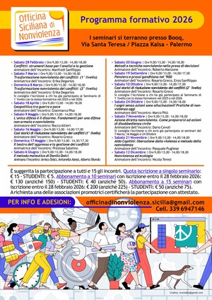 L'Officina Siciliana di nonviolenza avvia il secondo cliclo di formazione sulla nonviolenza nei suoi aspetti teorici, metodologici e di guida per le azioni che intendono costruire la pace.