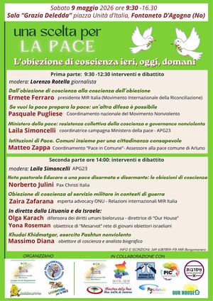 Il convegno “Una scelta per la pace. L’obiezione di coscienza ieri, oggi, domani” nasce da questa consapevolezza e si propone di portare al centro il dibattito su questo tema, ancora marginale nel nostro Paese, oltre che sulle principali iniziative che la società civile sta mettendo in campo per creare veri e propri spazi istituzionali, affinché la pace non sia solo uno slogan da utilizzare sulle bandiere e nelle manifestazioni, bensì una condizione concreta a cui tendere e da costruire