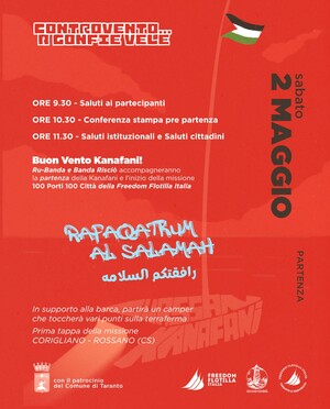 Piazza Fontana - Taranto (LE)Una serie di eventi accompagneranno la partenza della Ghassan Kanafani da Taranto e l'inizio della missione 100 PORTI 100 CITTÀ. ... - apr30gioevento
