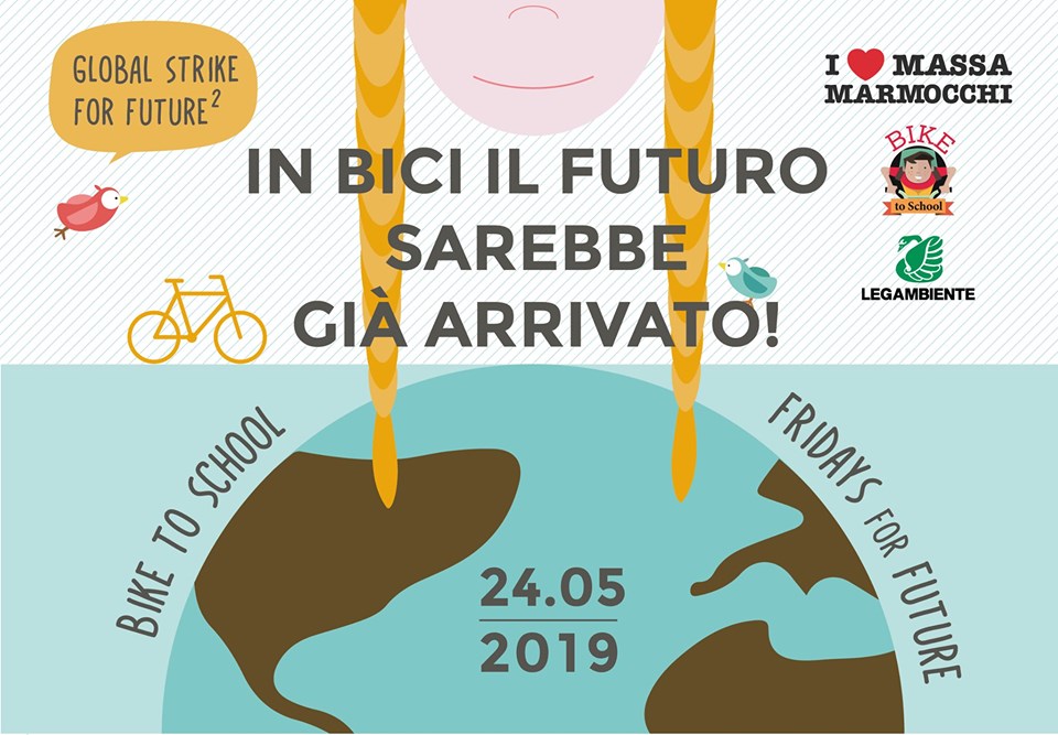 - PRIMA data di mobilitazione: il 24 maggio aderite al flashmob davanti ogni scuola, in occasione dello Sciopero Mondiale per il Clima! Ragazzi, genitori, bimbi in bici o a piedi davanti alla scuola (orario entrata) con un cartello con scritto ad esempio ("in bici il futuro sarebbe già arrivato", "le strade e il clima ai bambini"...)